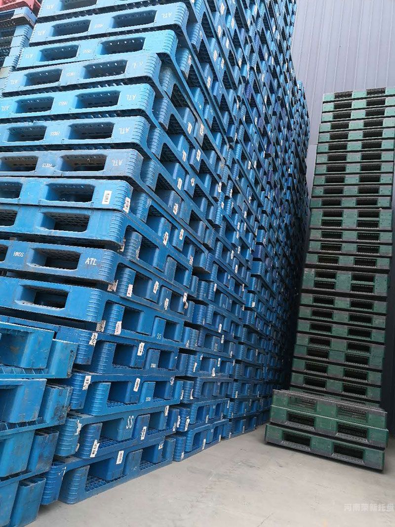 此款托盘为川字型1.1*1.1米内置8钢管二手塑料托盘,货源较稳定。